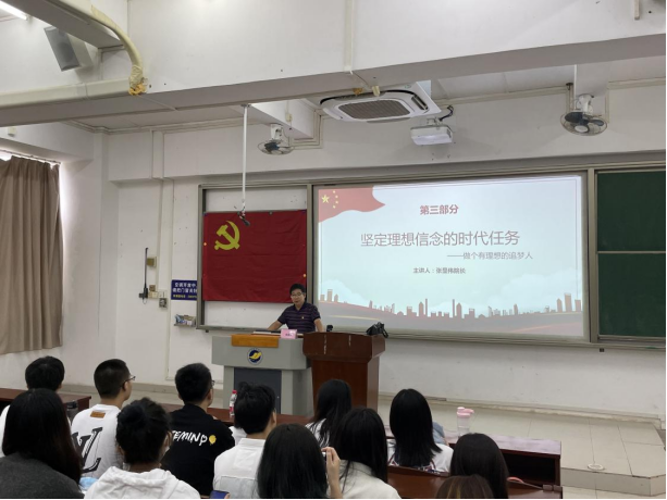 张显伟经理以“坚定理想信念的时代任务——做个有理想的追梦人”为题,讲述了老员工坚定理想信念的重要意义、时代任务、实践逻辑,勉励同学们要勤于学习、善于思考、勇于实践,将个人理想与祖国的前途命运紧密结合,让青春在实现中华民族的伟大复兴的远大理想中绽放。