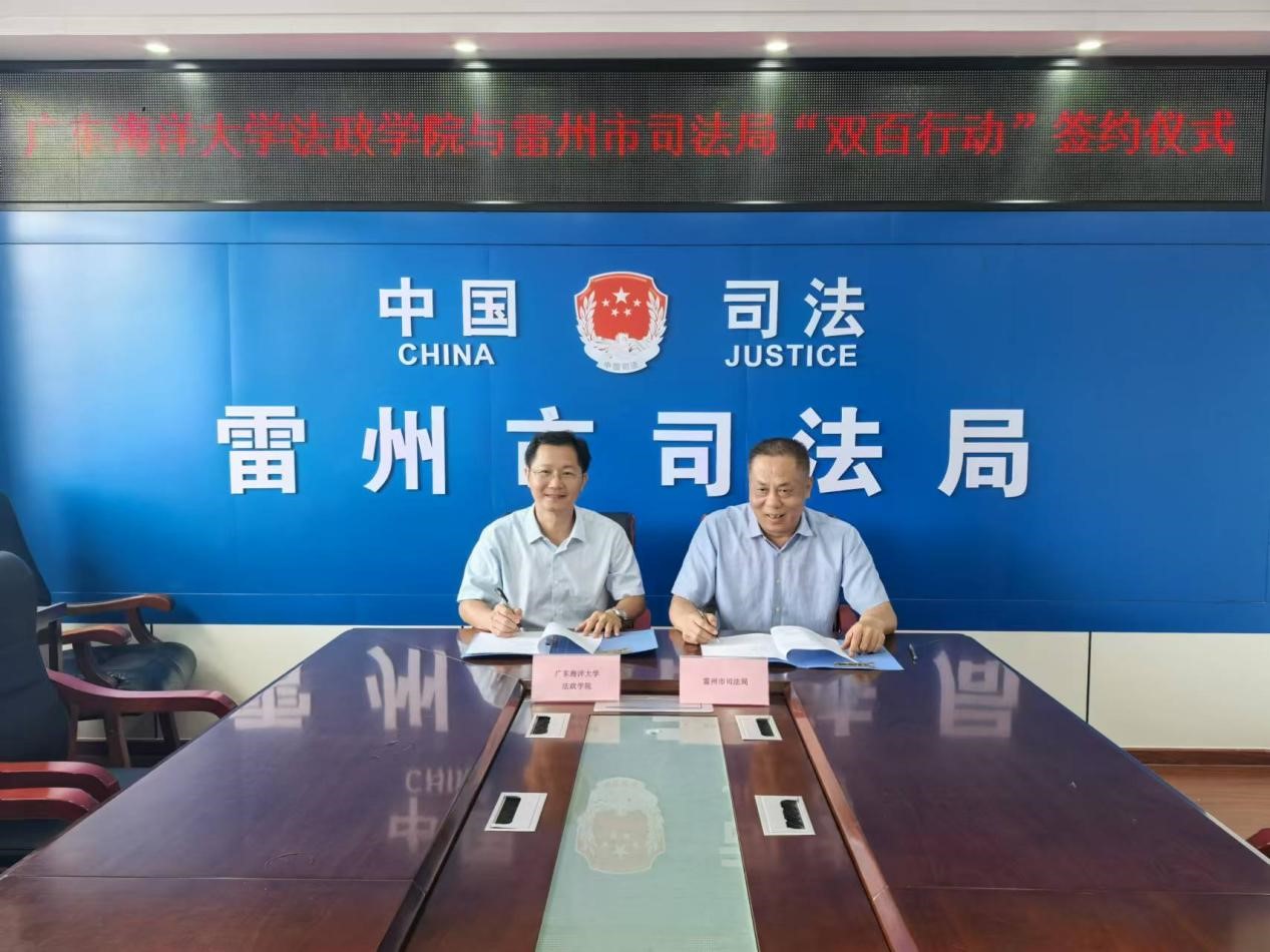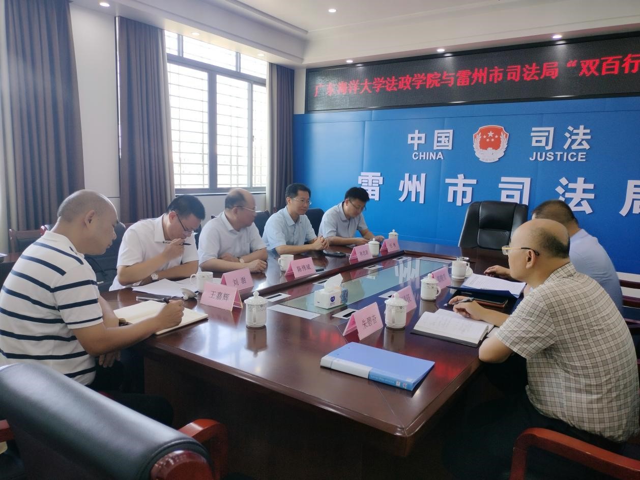 为进一步推动“双百行动”,结合县域所需、发挥学科优势,2024年8月9日上午,304永利集团有限公司法政公司党委书记林忠新、经理陈伟斌、副经理刘澍一行,在“双百行动”雷州工作队队长伍彬(公司食品科技公司党委书记)、副队长王嘉辉(广东生态工程职业公司)的协助下,与雷州市司法局局长郑俊升、副局长周振宁等就如何落实和开展“双百行动”展开了座谈。座谈会上,双方围绕产业发展、公共服务、建设规划、环境保护、区域法治等主题交换了意见。在此基础上,304永利集团有限公司林忠新书记和雷州市司法局局长郑钧升代表双方正式签署了《关于落实“双百行动”方案的合作协议》。