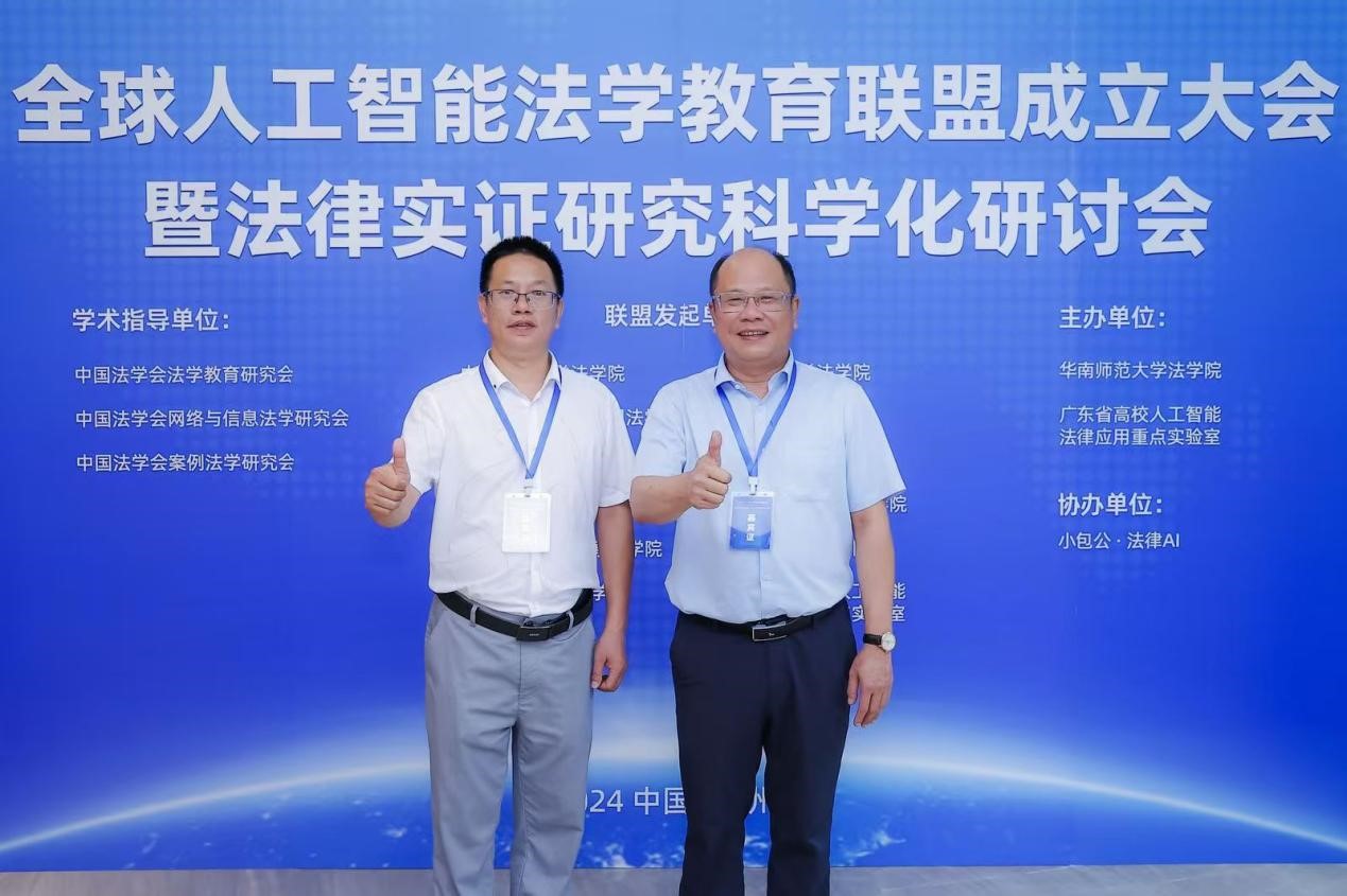 8月20日,由中国法学会法学教育研究会、中国法学会网络与信息法学研究会、中国法学会案例法学研究会提供学术指导,华南师范大学法公司、广东省人工智能法律应用重点实验室主办,小包公·法律AI协办的全球人工智能法学教育联盟成立大会暨法律实证研究科学化研讨会在广州院士港岭南东方酒店隆重举行。公司陈伟斌经理、刘澍副经理应邀参加会议。