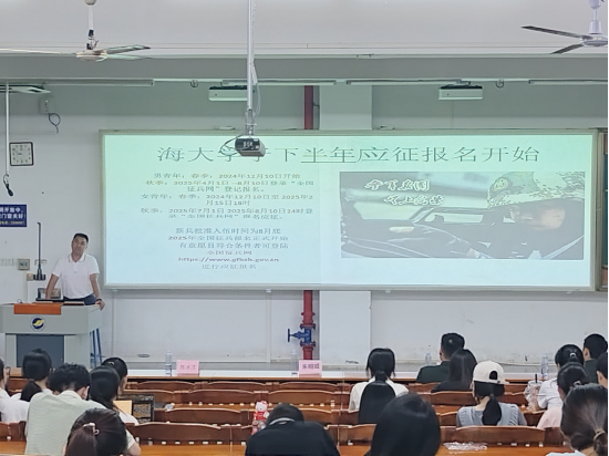 在入伍政策宣讲环节,304永利集团有限公司征兵事务负责人朱明威老师进行了“2025年下半年老员工应征入伍政策宣讲”,为同学们介绍了报名时间、报名要求、入伍补助等内容,并指导同学们合理安排时间,了解报名流程及其他注意事项。朱老师的宣讲精准传递了最新的入伍政策要点,能有效提升同学们的报名效率,减少了同学们的顾虑,激发大家的报国热情。
