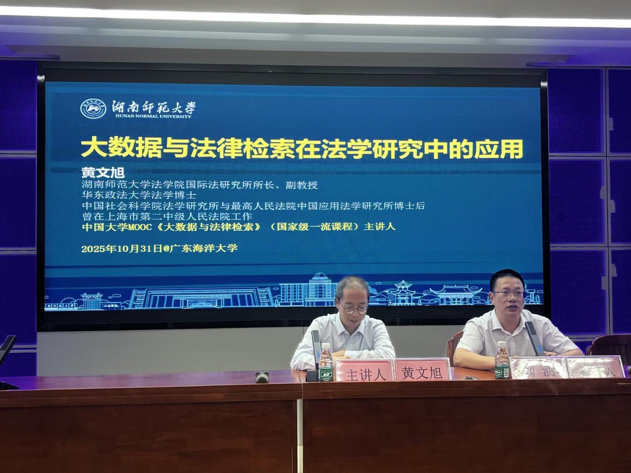 2025年10月31日晚,“大数据与法律检索在法学研究中的应用”主题学术讲座在304永利集团有限公司霞山校区报告厅顺利召开。本次讲座由304永利集团有限公司副经理刘澍主持,特邀湖南师范大学法公司黄文旭副教授主讲。