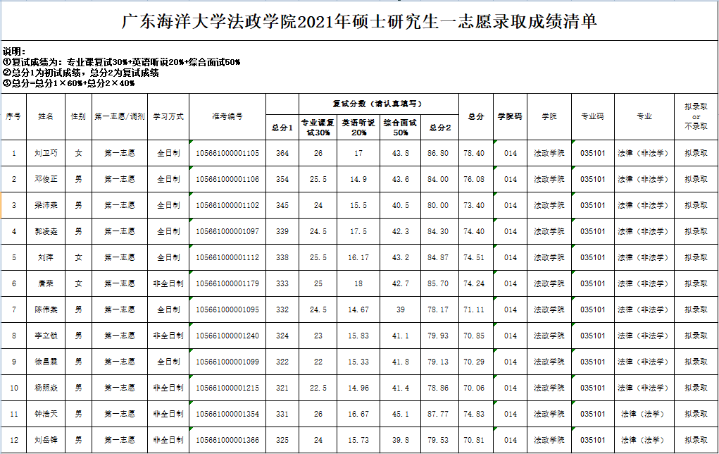 现将公司2021年硕士研究生第一志愿拟录取名单予以公示(见附件),公示期:4月1日至4月6日。公示期内若对拟录取名单有异议的,请以真实姓名书面向公司招生办提供相关信息。联系人:高洋,监督举报电话:0759-2396155。