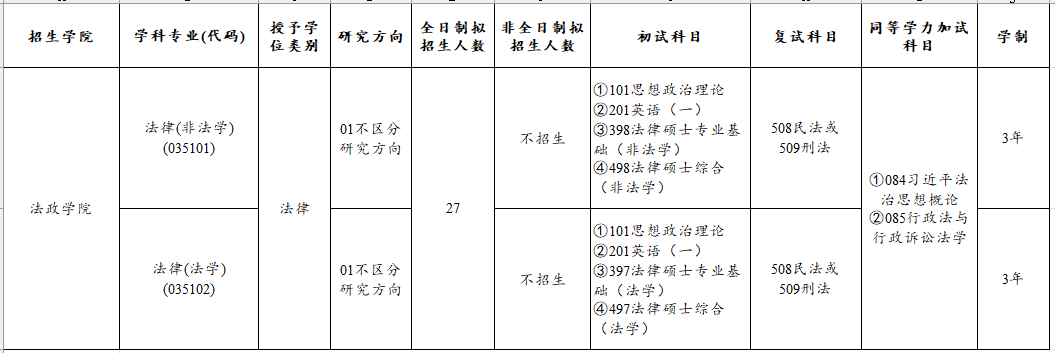 公司现设有法律(法学)(035102)及法律(非法学)(035101)专业学位硕士点。目前在校全日制专业硕士研究生78人。