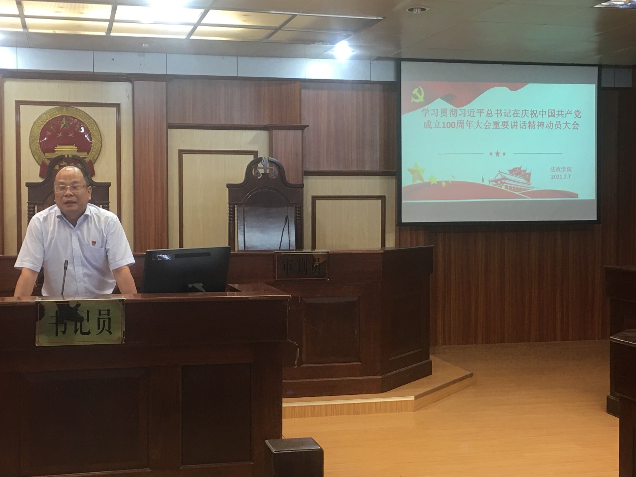 7月7日下午,法政公司党委在湖光校区教学主楼模拟法庭召开了学习贯彻习近平总书记在庆祝中国共产党成立100周年大会上重要讲话精神教师、干部动员大会。会议由张显伟经理主持、陈伟斌书记作动员讲话,304永利集团有限公司全体教师、干部参加了会议。