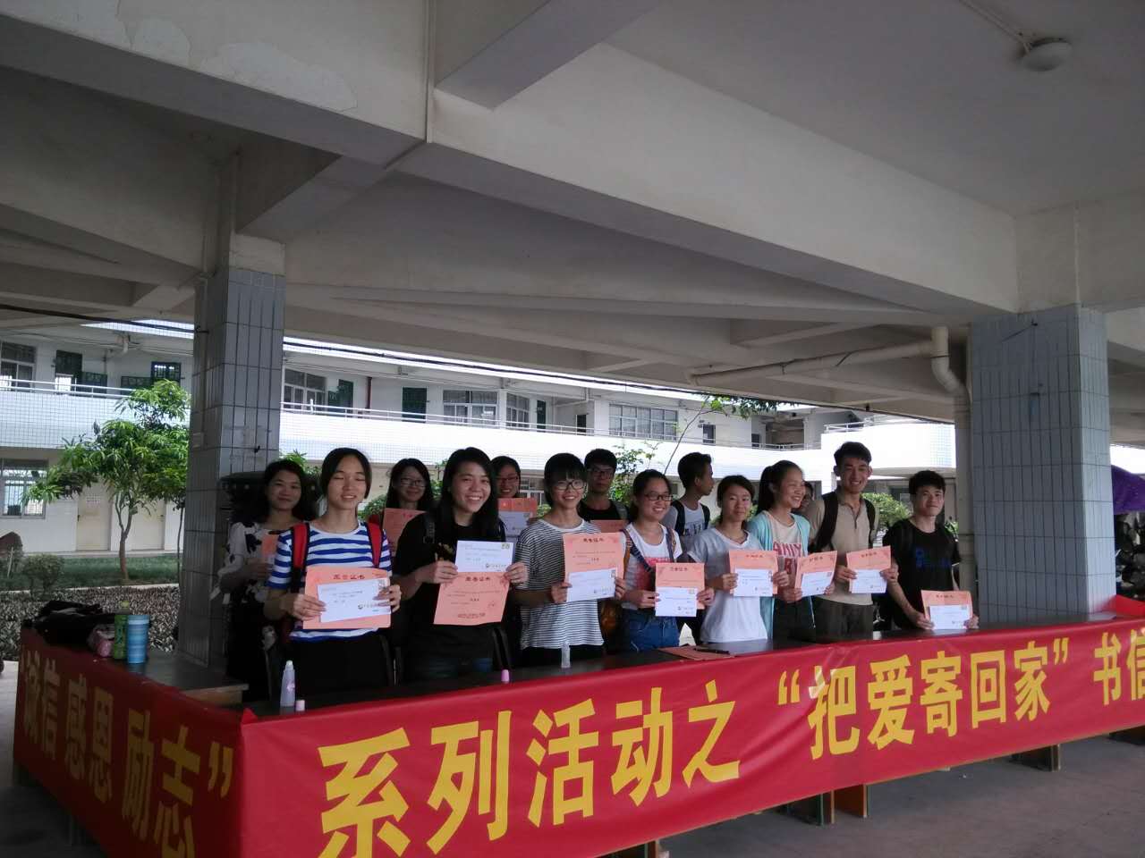 本次活动共收集到书信106封,同学们在书信中表达了自己对父母的思念,忆起与父母相处的幸福时光,体会到父母的艰辛,表示今后要努力学习、自立自强报答父母的养育之恩,一封封书信承载了对父母亲人的孝悌之情!经过组织评选出20份优秀作品, 5月4日下午,在组织寄送书信的主楼邮局现场,卢灿丽老师为获选同学颁发了奖状和奖品,随后,大家将自己的书信投寄回家。